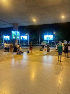 到着出口を出ると、タクシーやバス乗り場はありますがGrab(グラブ)のピックアップ場所がありません。