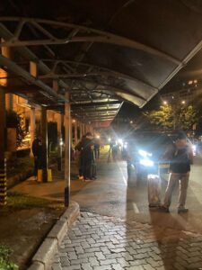 ⑤ピックアップ場所ではGrab(グラブ)を待つ人達、次々と配車タクシーが到着しています。